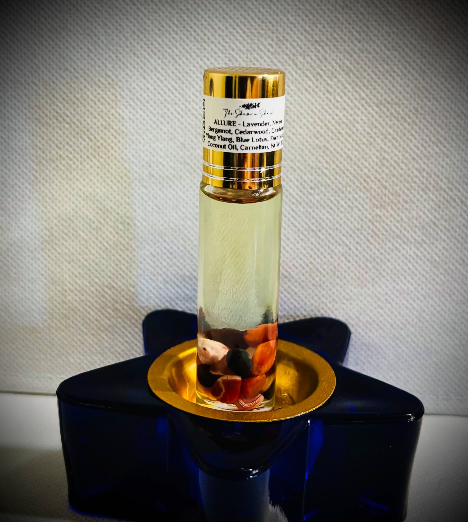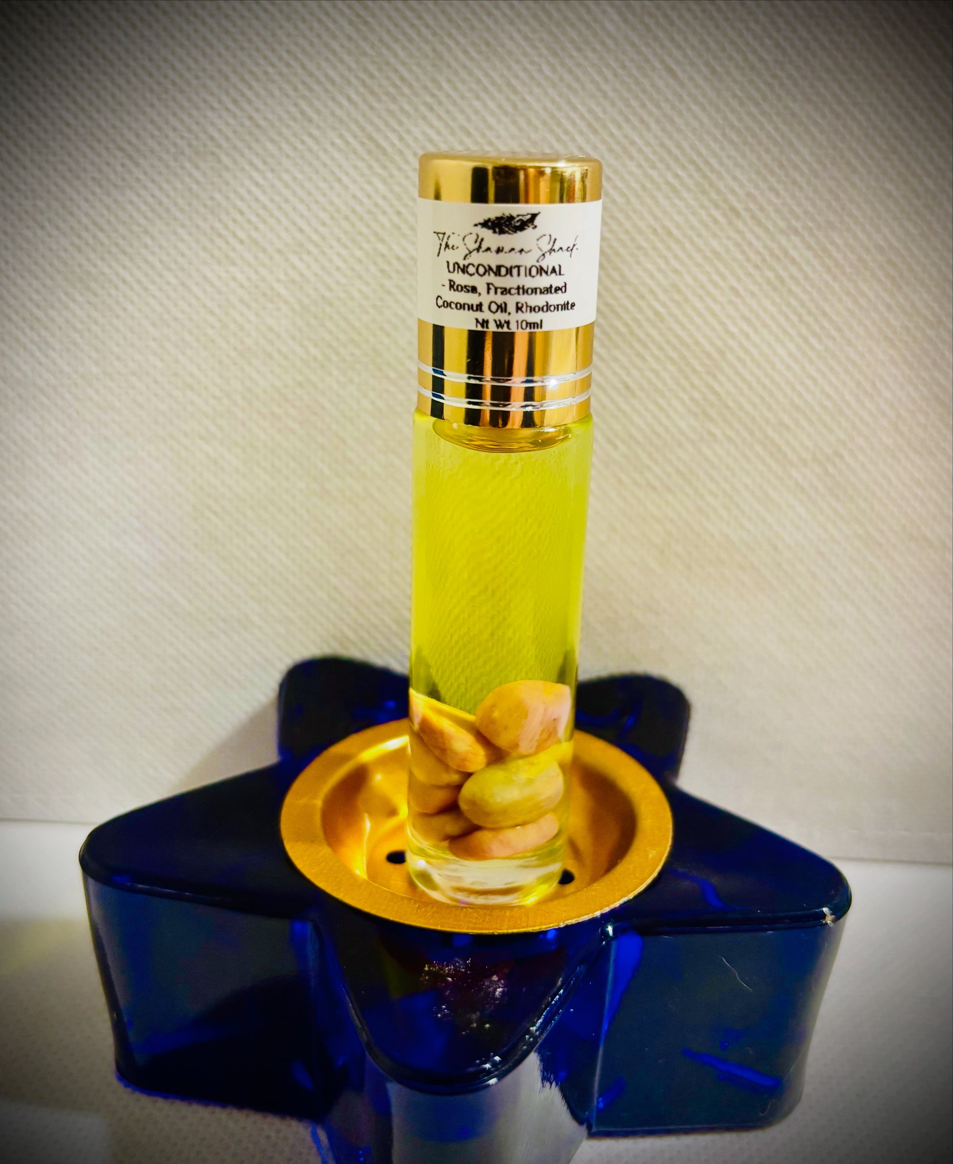 Crystal & Stone Infused Oil rollers made with fractionated coconut oil, essential & fragrance oils, and various crystals and stones.